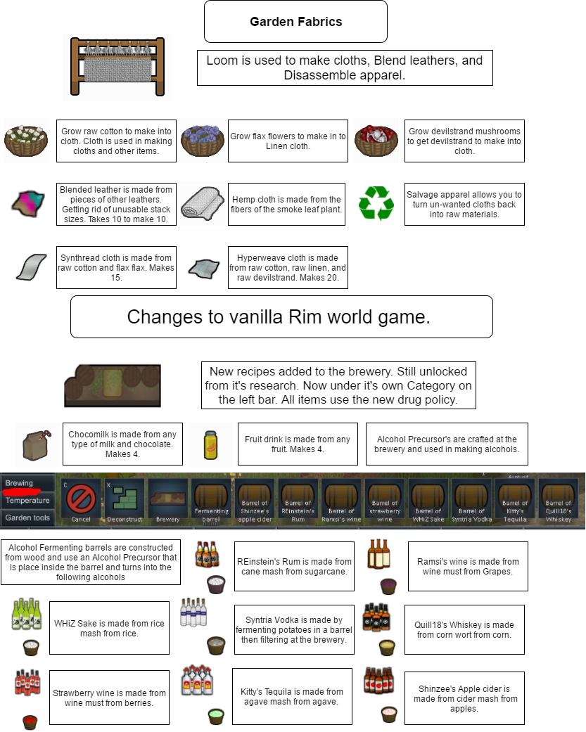 Мод Vegetable Garden для Rimworld — добавляет новые сельскохозяйственные культуры и методы обработки их. Мод отлично разнообразит рацион питания вашей колонии. Выбрав нормальные погодные условия для выращивания культур из земли, можно создать целые плантации. Колонисты только и будут, сажать — копать, сажать — копать. Нужно отметить, что каждый продукт имеет свою прибавку к настроению. Добавлены/изменены следующие новые растения: