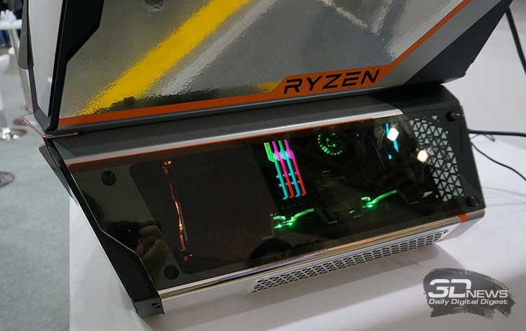 Весьма примечательным оказался и Full-Tower корпус New Ark 90. Его частью является система жидкостного охлаждения Captain 280 EX, и подсвечиваемая полоса в углублении передней панели, которая представляет собой ни что иное, как индикатор интенсивности тока хладагента в контуре. Цвет подсветки всех узлов New Ark 90 с LED-элементами пользователь сможет настроить самостоятельно. Помимо комплектной СЖО серии Captain с 280-мм радиатором, допускается установка дополнительных радиаторов типоразмера 120–360 мм.