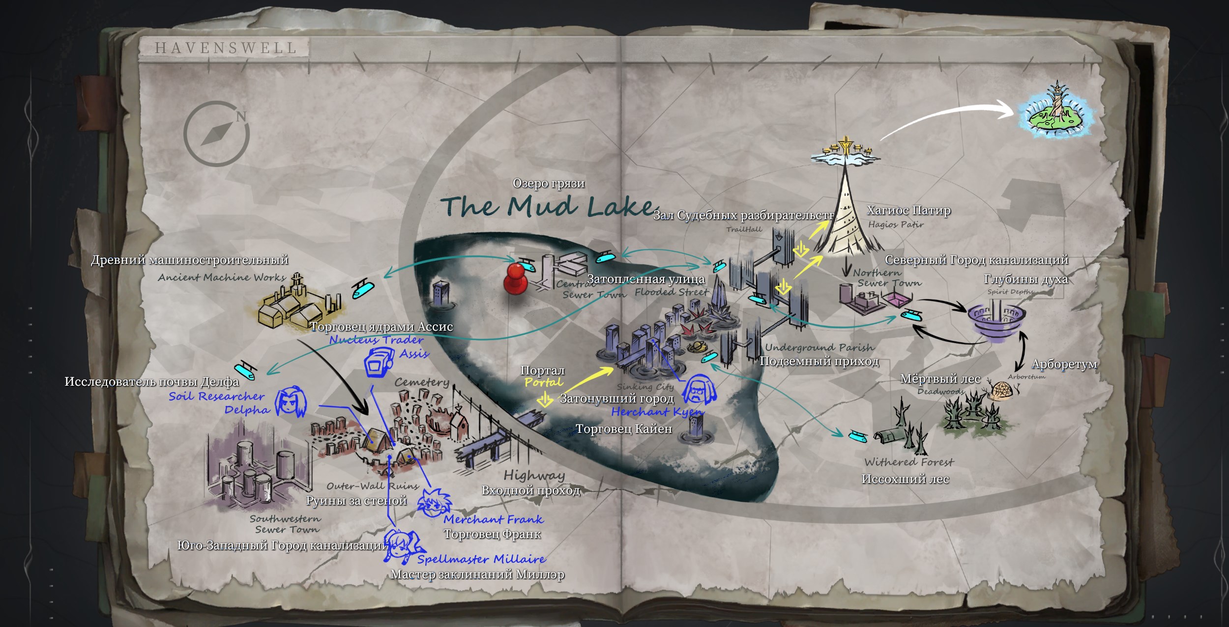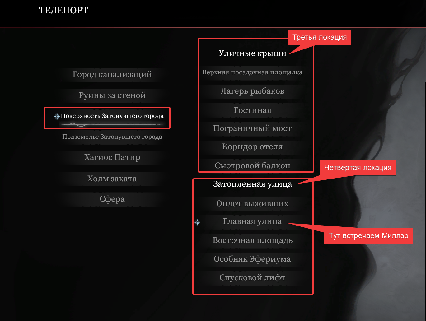 Перечень открытых локация я не вносил в скиншоты. Там только пометка где найти робота для покупки оружия за ядра. Телепорт к древу есть. Но к двору древа я пробирался через NoClip использовал в некоторых моментах. К этой двери с древом я пришел уже после ласта, а как убиваешь ласта, то часть НПС и скриптов связанных с ними отваливаются, пришлось сквозь стены ходить ибо заного туда переть не хотелось)