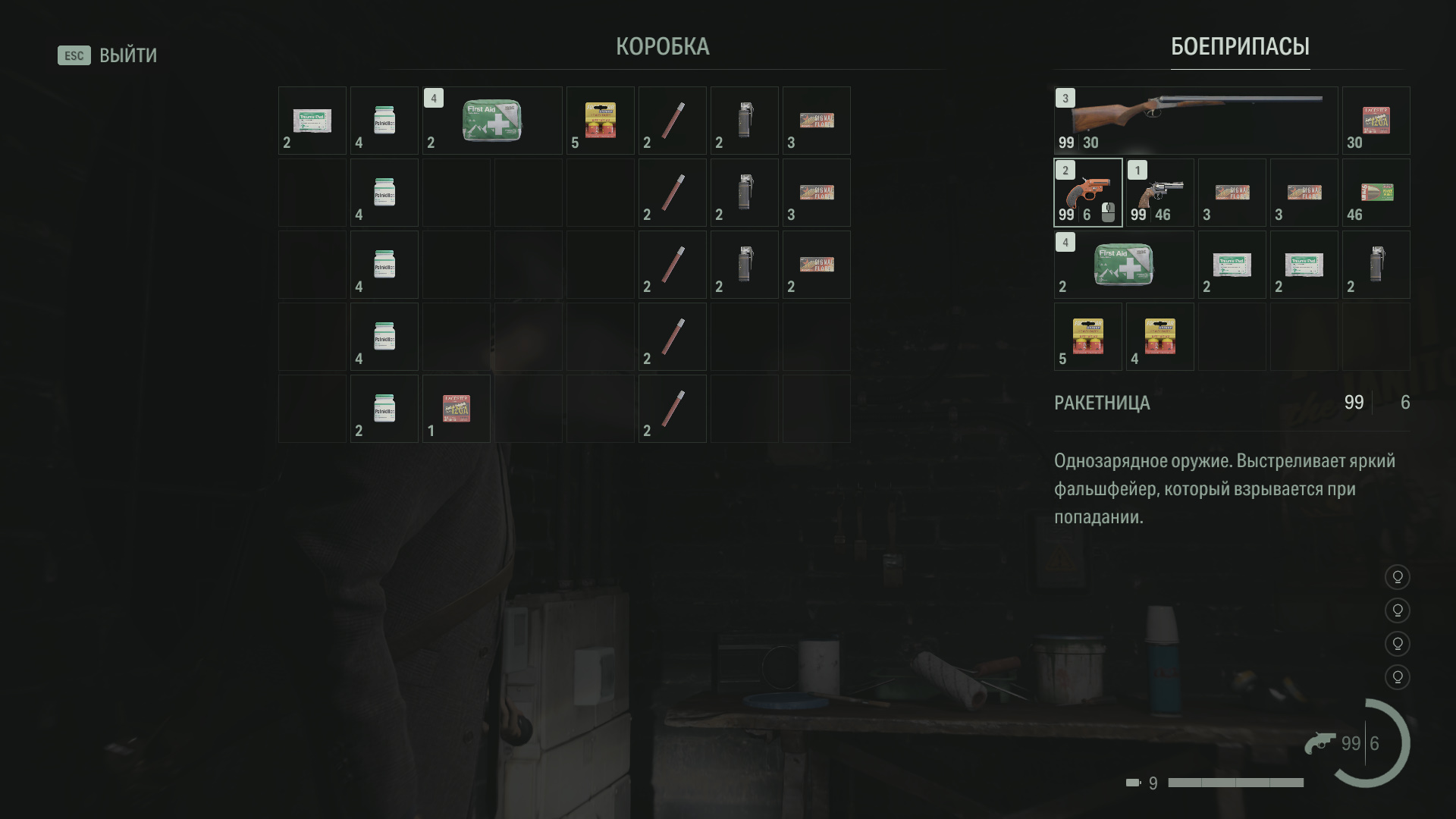 Инвентарь очищается полностью (патроны, аптечки, батарейки и т.д.)