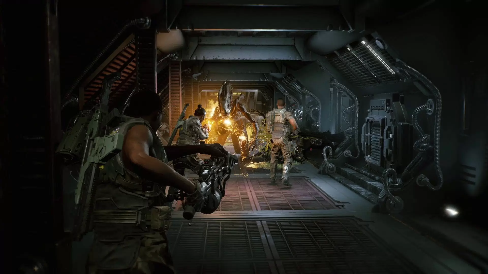Тут сейчас совсем все плохо. Скучно, однообразно. Коридор за коридором, волна за волной. Все уровни сводятся к бегу по узким коридорам, которые иногда сменяются открытыми локациями, коих очень мало в игре. Враги однообразны и не могут похвастаться разнообразием. Большую часть времени вам просто нужно отбиваться от ксеноморфов и ждать окончания таймера. Потом перейти в другую комнату и повторить. Не смотря на классы, тактики в игре нет. Вся команда просто стреляет в толпу бегущих врагов. В миссиях нет никаких поворотов сюжетов. Даже боссы - это обычные враги с увеличенным HP. Во время прохождения меняются только текстуры, но не уровни.