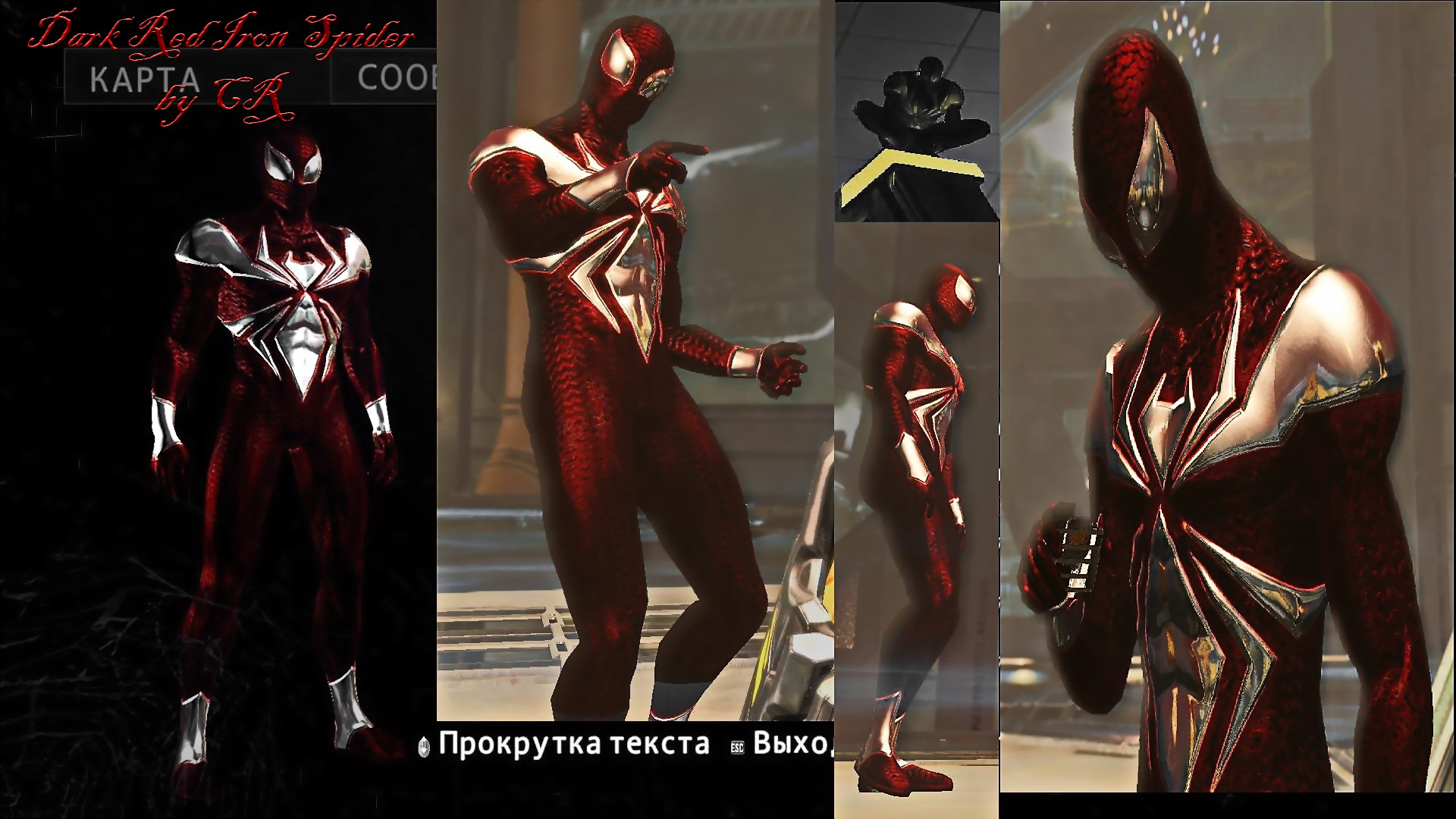 Запуск осуществляется через TexMod. Cкин замещает костюм "Железного Паука". Приятной игрового процесса. С уважением, Капитан Россия!