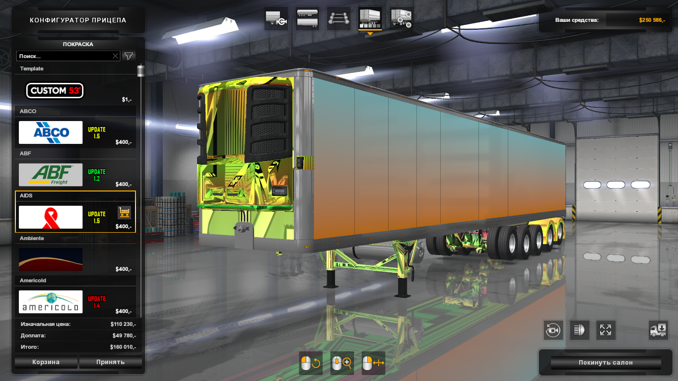 - Добавлена возможность тюнинга боковин кузова. Кроме крашеной, теперь доступна хромированная и нержавеющая версии;
