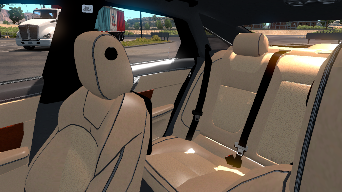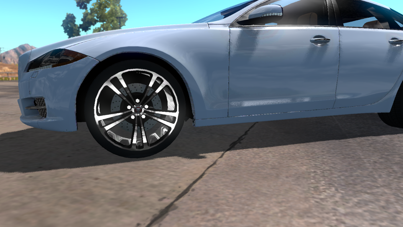 Переделанная версия старого мода Jaguar XJ 2014 из ETS2. Автомобиль теперь соответствует своим реальным характеристикам, быстрый разгон до 100 км/ ч и максимальная скорость около 240 км/ч. Имитация автоматической коробки передач, никаких переключений, ставится режим D и можно ехать (в салоне никакой рукоятки переключения передач тоже нету). Задний привод. Нагрузка по осям реальная, поэтому тормозит она хорошо, управляется тоже. Старые плохие текстуры салона заменены на максимально качественные. Модель сделана добротно, поэтому машине присваиваются игровые номера, дворники рабочие и снаружи, и внутри. Игровая физика не затронута, специально сделано чтобы использовать машину вместе с грузовиками. Директория мода максимально очищена от упоминании о том, что это была шкода суперб, приписана даже своя камера обзора в салоне автомобиля. Есть небольшой косяк, из-за того что в игре поверхности отображаются только с одной стороны, в водительской двери через отверстие для стекла просвечивается дорога.