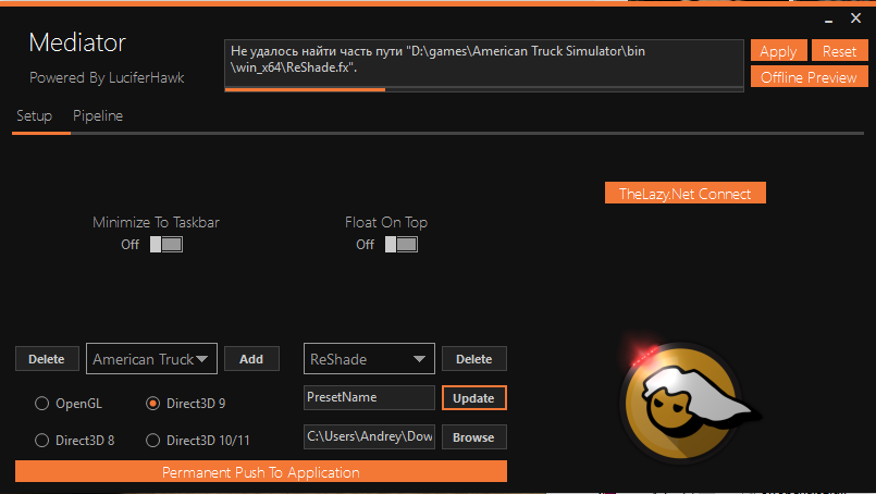 3. Указать путь к amtrucks.exe. (\American Truck Simulator\bin\win_x64)