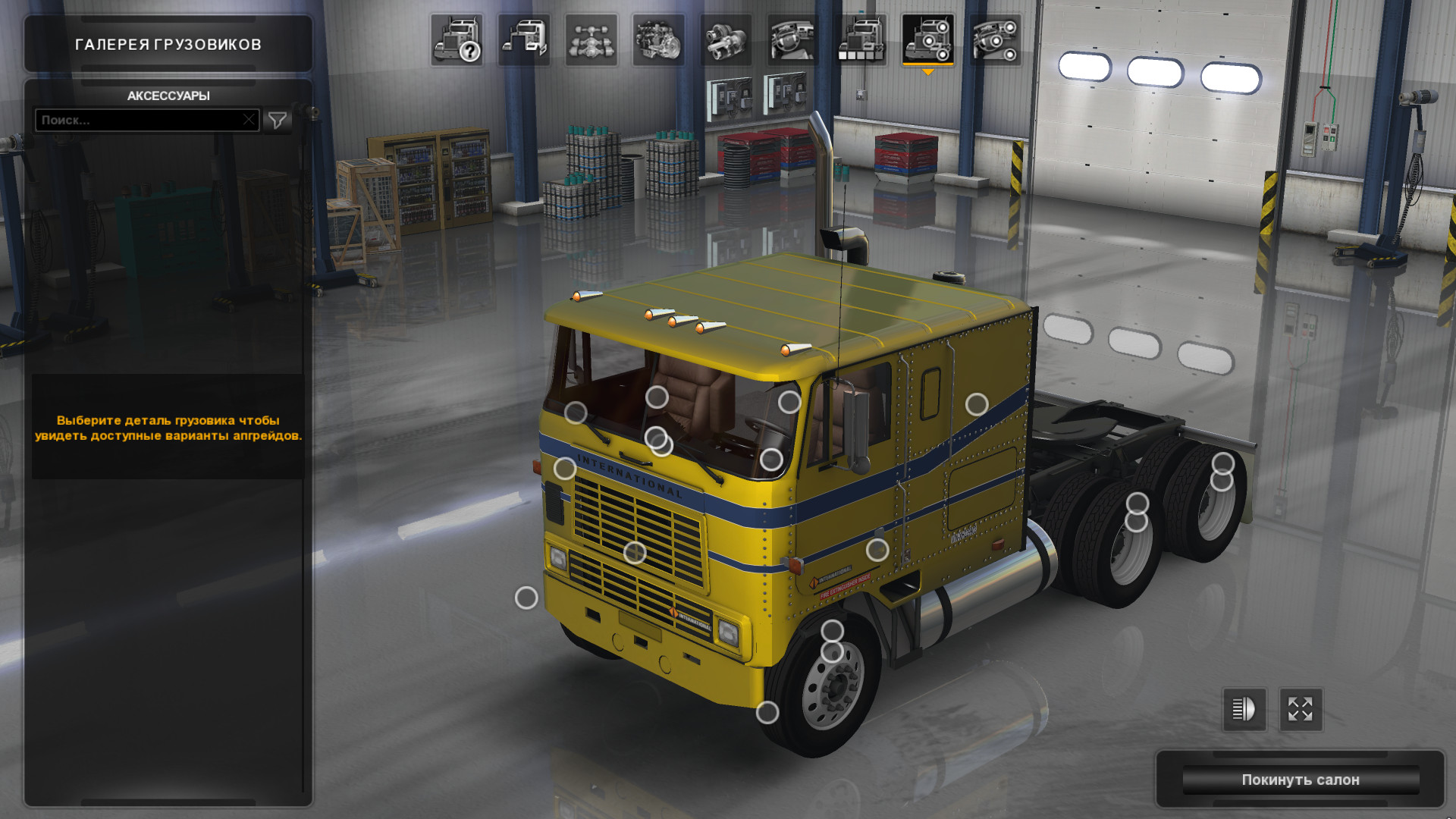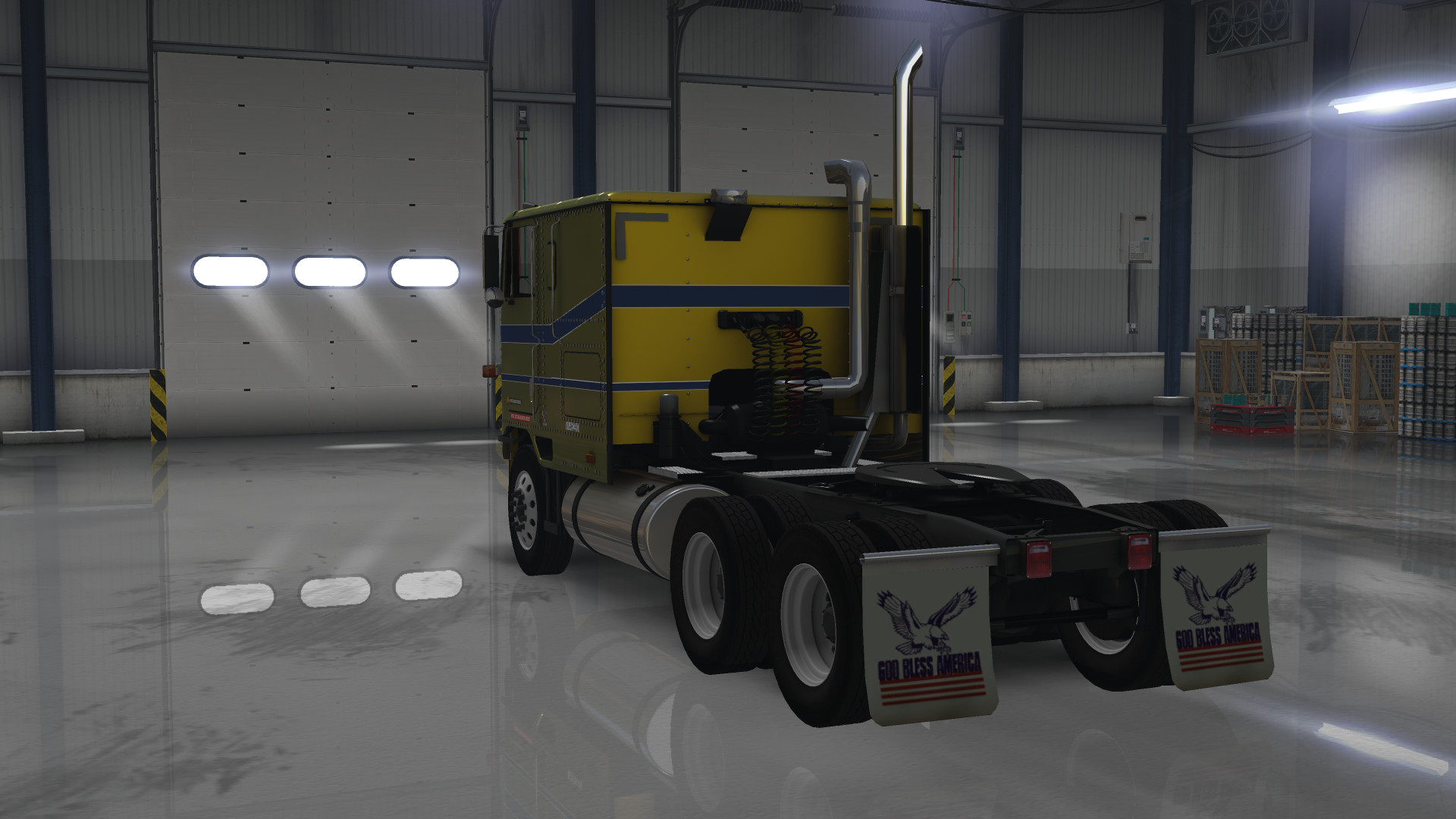 - Две кабины - Одно шасси - 4 движка - 8 трансмиссий Из внешнего тюнинга: бамперы, решётка радиатора, баки и скины. Раскрасок - кот наплакал, но металлик поддерживается. Салон от привычной всем модели 9800 Cabover. У Flattop своего салона нет. Масса думисов на салонные DLC, которых в пакете нет (даже GPS). Иконок практически нет. 29 уровень покупки в салоне Peterbilt, за счёт передних дисков. Манифест отсутствует, авторство не указано. Мне чем-то напоминает страшненький 9600-й.