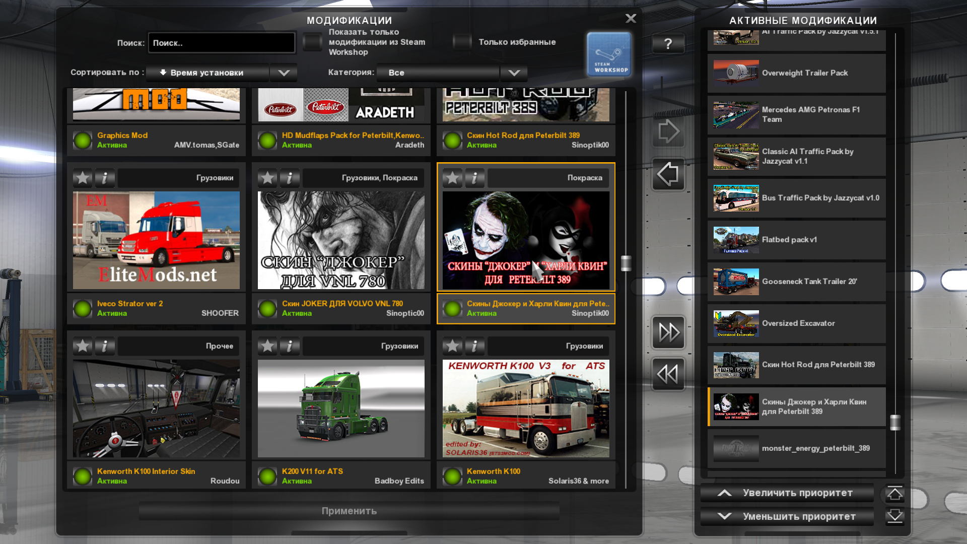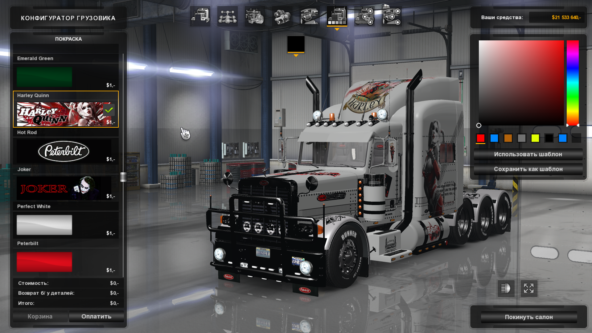 ATS. Скин "Joker" и "Harley Quinn" для Peterbilt 389