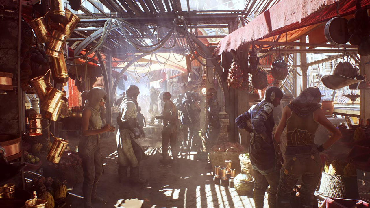 В Anthem будет огромный открытый мир и безопасный хаб в городе, где можно будет брать квесты, видоизменять и модернизировать экзокостюмы, а также наверняка торговать и общаться с другими игроками. Что интересно, в хабе игра будет от первого лица, а за его пределами — от третьего. В демо забавно менялся и сеттинг: сам город как будто пришел из вселенной «Звездных войн», а вот окружающий мир — из «Аватара».
