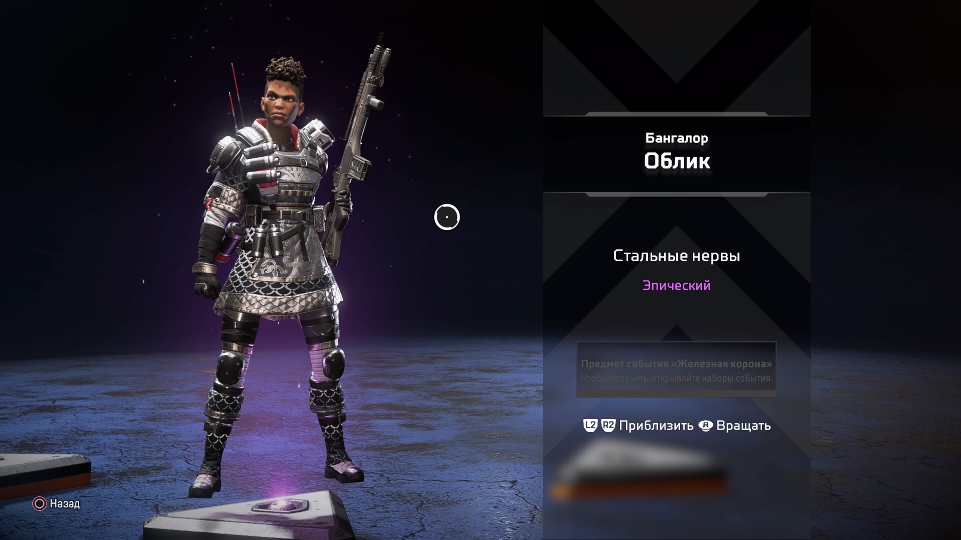 С 13 по 27 августа в Apex Legends проходит временное событие «Железная корона», позволяющее не только испытать себя в соло-режиме «королевской битвы», но и пополнить гардероб легенд новыми обликами, доступными лишь в течение ограниченного периода. Всего доступно 2 эпических и 7 легендарных скинов: