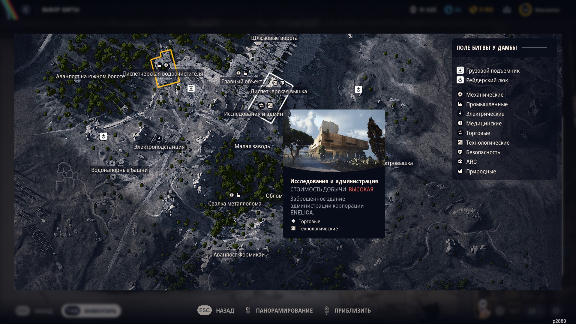 - Карта «Поле битвы у Дамбы» — Здание исследований и администрации: