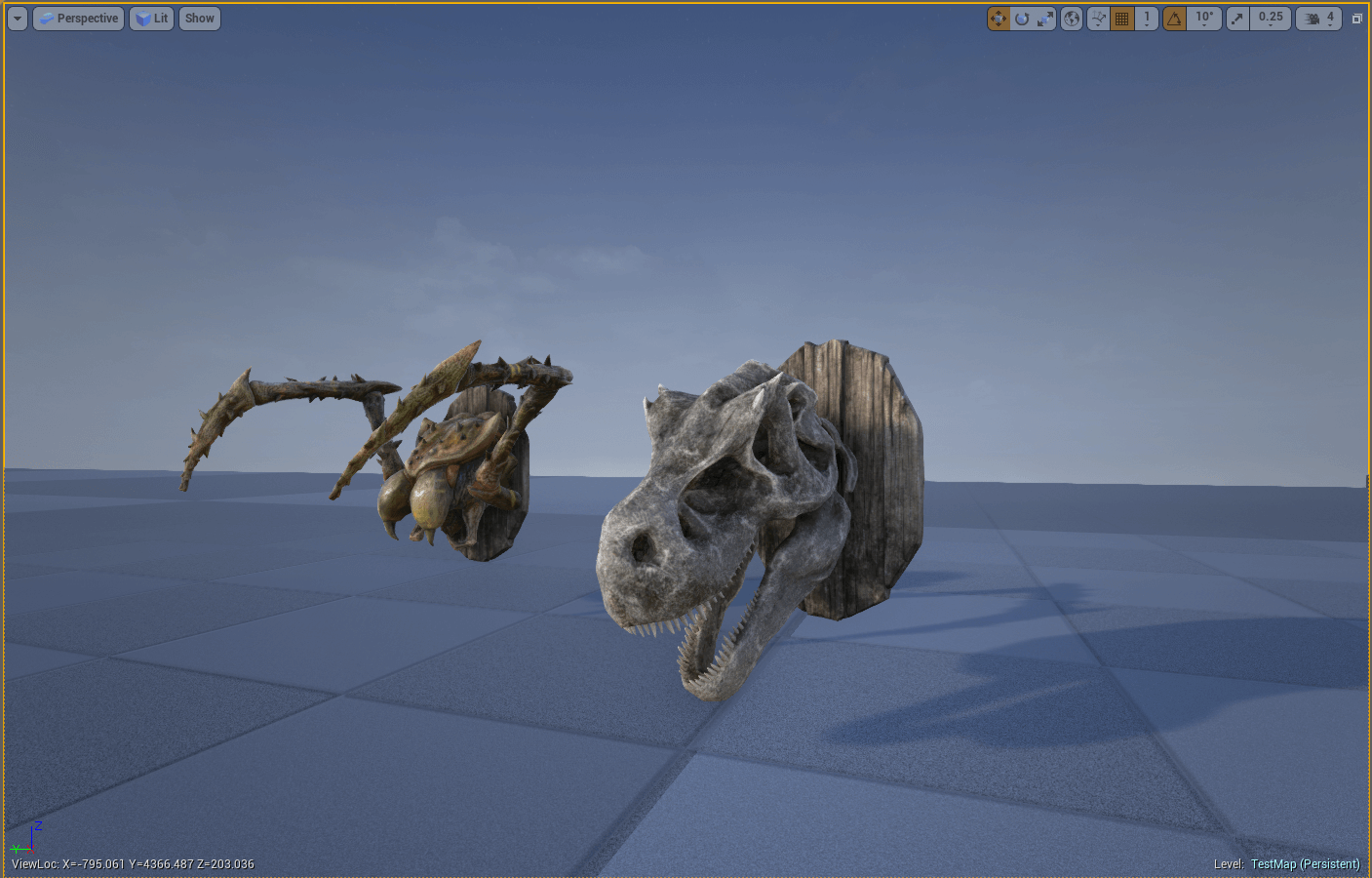 • Настенные трофеи, в данный момент готовы для рекса и паучихи.