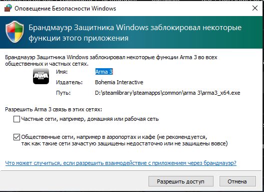 после установки галочки на частных сетях игра пошла.В то же время такая же проблема возникла у напарника, но почему то установка галочки не помогла.Напарник просто не заходил на сервер 3 недели и потом спокойно зашёл.Ну а сейчас опять не можем зайти оба.И отключали антивирус, и отключали брандмаузер, и обновляли мод, и пытались зайти напрямую никак.Хотя другие заходят на этот сервер без проблем.