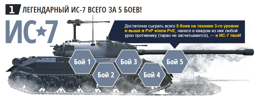 Уже привычный легкий троллинг грозного конкурента и ИС-7 (премиум 3 лвл) за 5 боев в любом режиме с нанесенным уроном (кроме тарана почему-то).