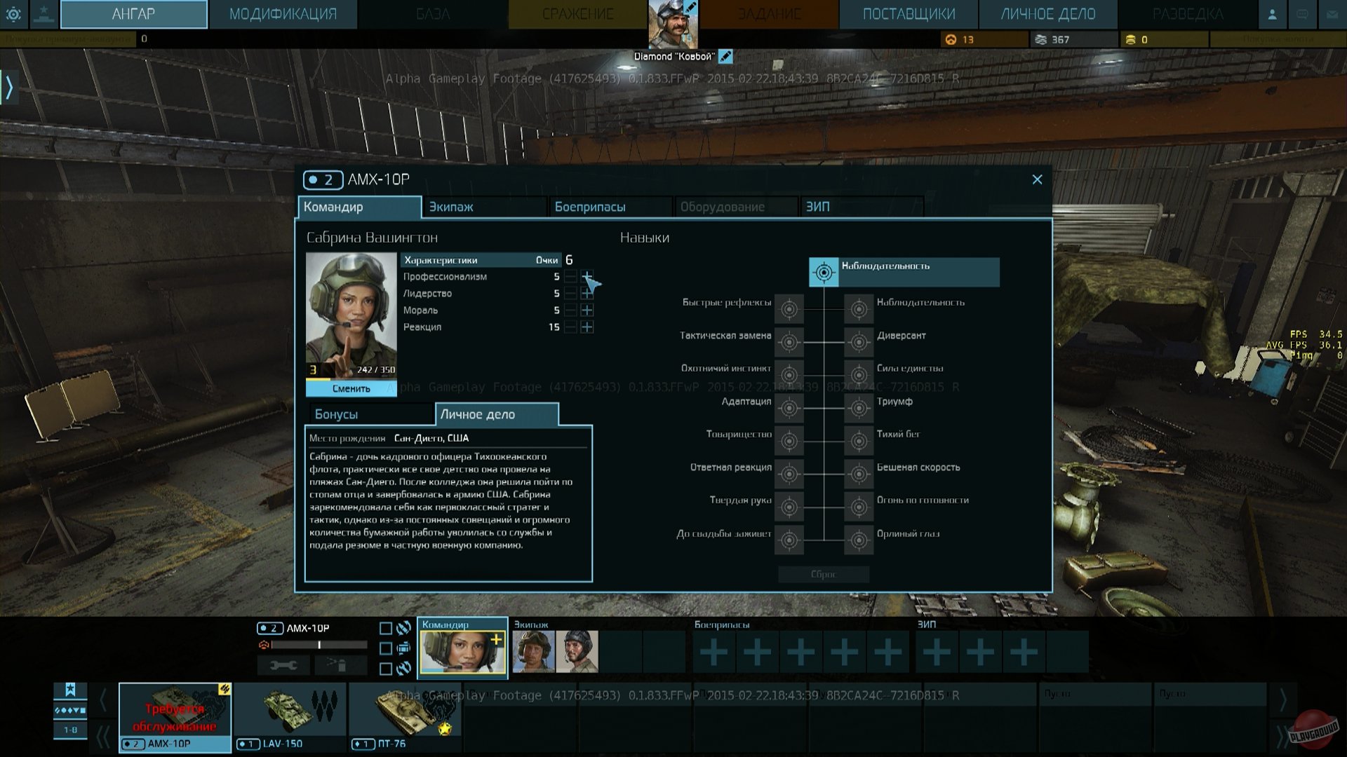 Когда запускаешь любой проект от Obsidian, подсознательно ожидаешь каких-то характерных особенностей студии. Но когда запускаешь Armored Warfare, принадлежащей к нехарактерному для разработчиков жанру, все в этой игре с первого взгляда напоминает о другом известном танковом проекте. Но многие элементы получили свое развитие. Все начинается с ангара, где в центре располагается выбранная техника. Модели танков в игре выполнены на очень достойном уровне и радуют глаз обилием деталей и навесных объектов. Расположение элементов в интерфейсе тоже не смутит опытного «танкиста», хотя эргономичность интерфейса в AW высока уже на стадии альфы.