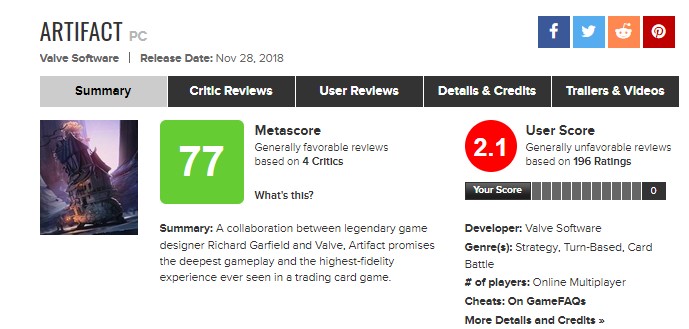 Большинство карточных игр рассчитаны на донат, так что не удивлен, что Artifact не получился иным. P.S: Hearthstone убивать не надо, это сделают сами Blizzard.