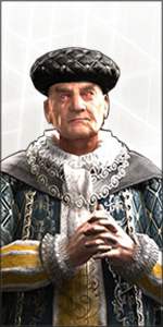 Испанский аристократ, Великий Магистр Ордена тамплиеров и важная фигура католической церкви, в последствии стал Римским Папой и взял себе имя Александа VI. Он остается одним из самых противоречивых фигур в истории Церкви и по сей день ассоциируясь с развратом и коррупцией. Однако несмотря на свою репутацию, Родриго оставался умелым политическим игроком, который достаточно приуспеел в хаотической борьбе за власть Италии эпохи Возрождения.