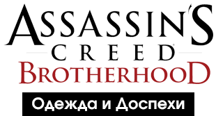 Игрок может менять одеяние Эцио, тем более количество цветов для покраски одежды увеличилось до 15. Цвет одежды никоим образом не влияет на геймплей и предназначен лишь для визуального и эстетического удовлетворения игрока. Кроме покраски одежды вы можете выбрать один из представленных ниже скинов в меню игры.