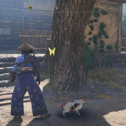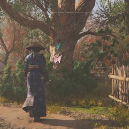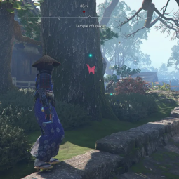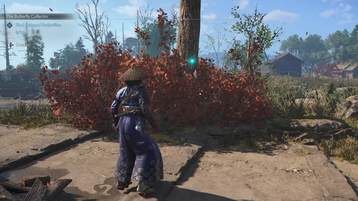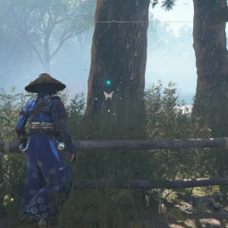 - Бабочка 9 — спрятана на дереве внутри куста напротив сгоревших домов на восточной стороне центрального острова. Перед вами будут руины Кодзё.