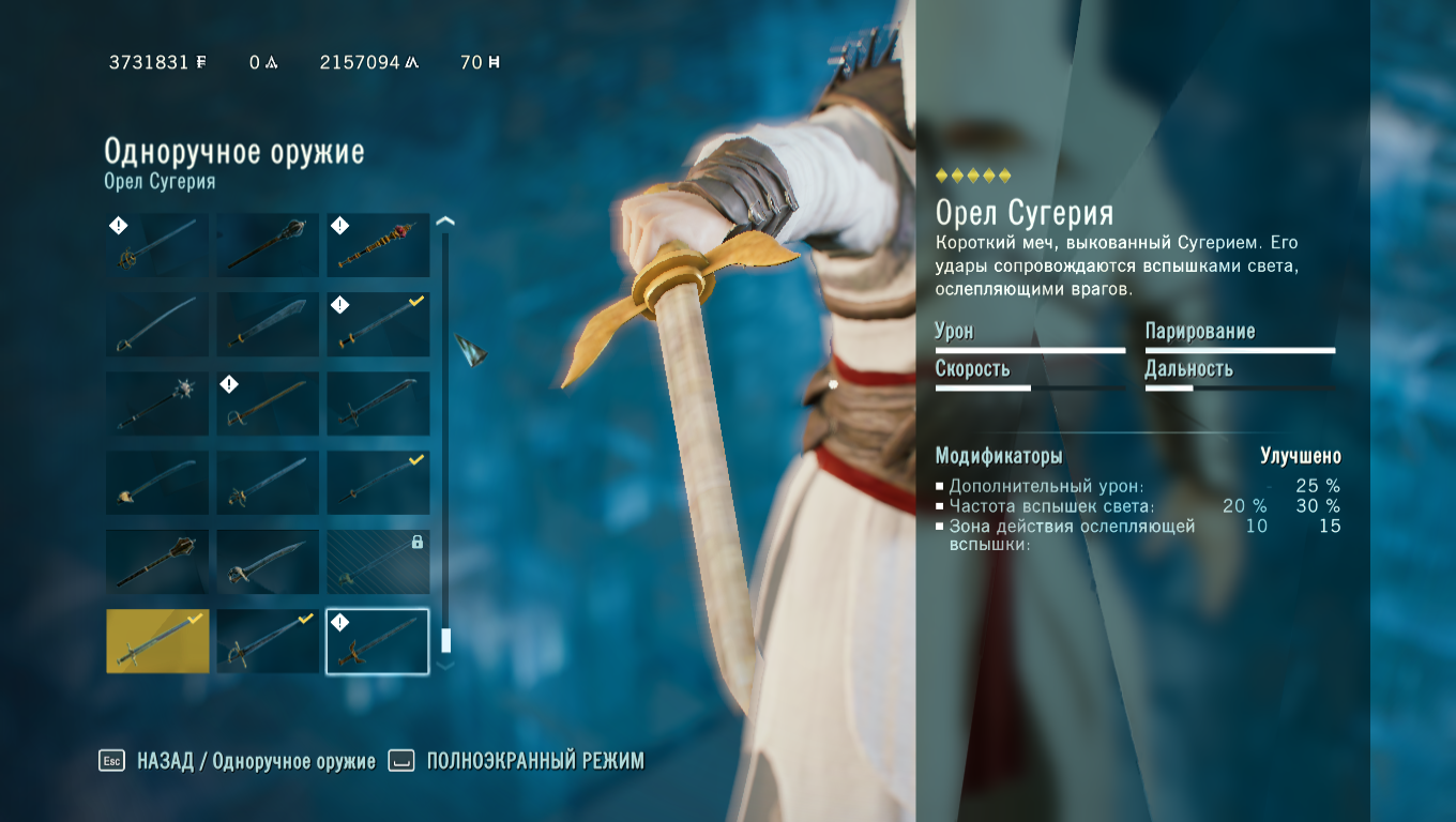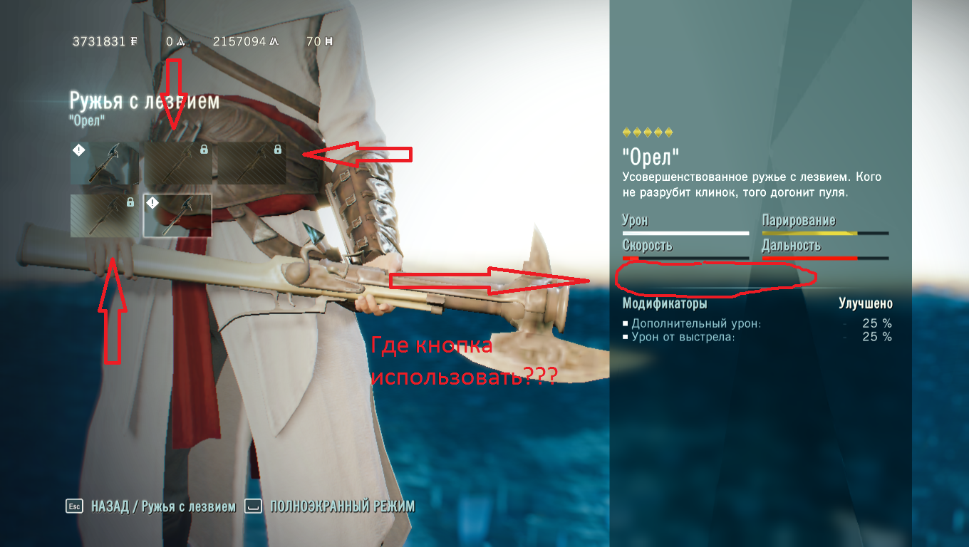 Помимо неразблокированного оружия есть баг на неодеваемое оружие. Как будто Арно стал пацифистом и отказался от войны. Даже оружие которое тебе дали по сюжету, после смены на более быстрый меч, перестает обратно одеваться. И эта лажа практически со всем оружием в дополнении.