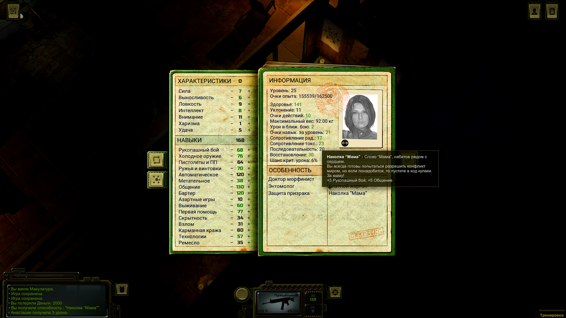 Также в этой локации в самом начале есть проститутка,с которой можно получить очень классный бонус для Гексогена,+1 Выносливости и Интеллекту.