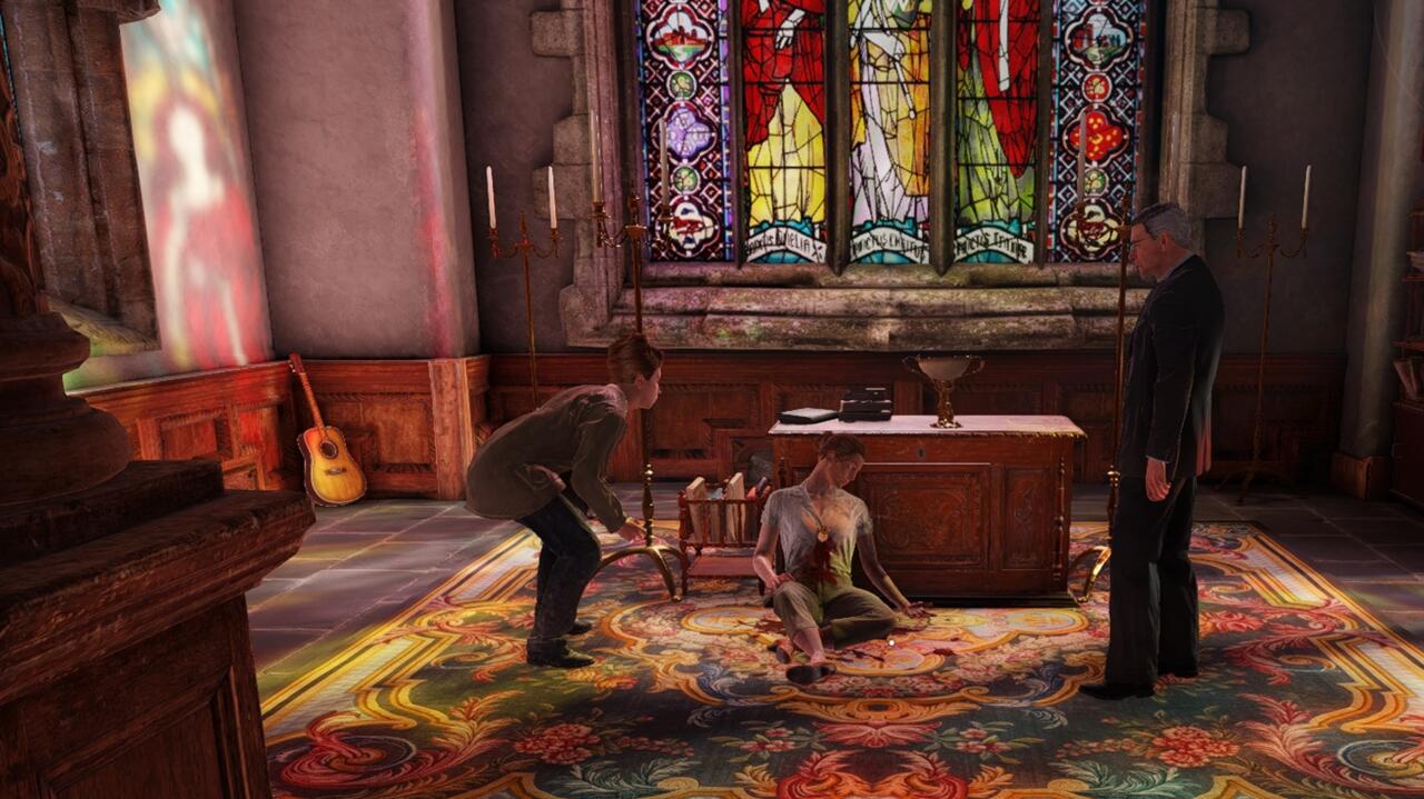 Попытка осмотреть место преступления быстро встретит сопротивление – викарий явно не желает, чтобы вы вмешивались. Однако это вас не остановит, и именно так начинается квест «Убийство в церкви».