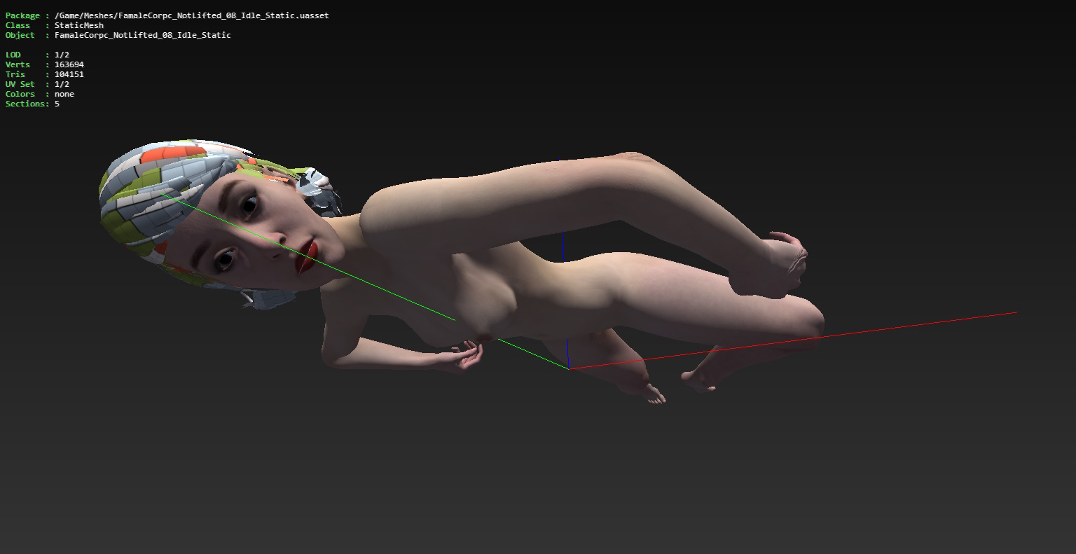 Собственно найденная 3D модель девушки. Статик меш без скелета.