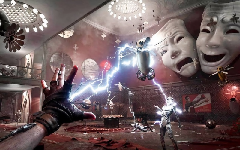 В коридоре с балеринами нажимайте на пульты и выбирайте правильные позы, чтобы тень балерины убила труп. Всего четыре тумбы с балеринами. Будет не сложно. Проходим на главную сцену, смотрим ролик, подбираем голову, забираем фляжку с дрона и убиваем Наташу. Поднимитесь по обломкам вправо и покиньте театр.