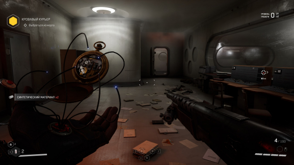 Сломайте первый замок. Щелкайте пальцем, чтобы сдвинуть все элементы. После каждого щелчка лампочка будет менять направление (по часовой или против часовой стрелки). Вам нужно нажать на все элементы. С каждым убранным элементом лампочка будет двигаться быстрее. Идите вперед и изучите автомат Элеонора. Здесь вы можете крафтить, улучшать оружие, разблокировать навыки. Получите «Шок», необходимый для открытия той самой двери. Выходите в коридор, лифты обесточены.