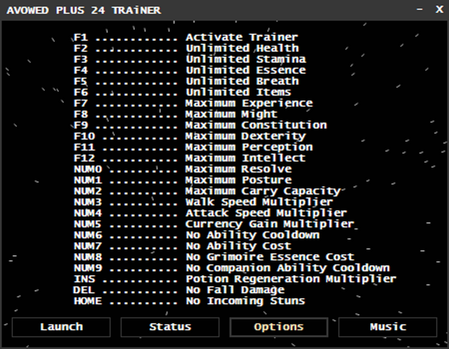 ПРИМЕЧАНИЕ: активируйте трейнер (F1) и остальные опции, когда вы управляете своим персонажем (не в меню).