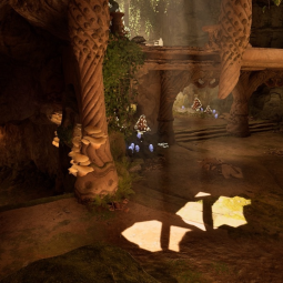 - Войдите в грот и двигайтесь вперед, пока не окажетесь в большом зале с руинами и колоннами.