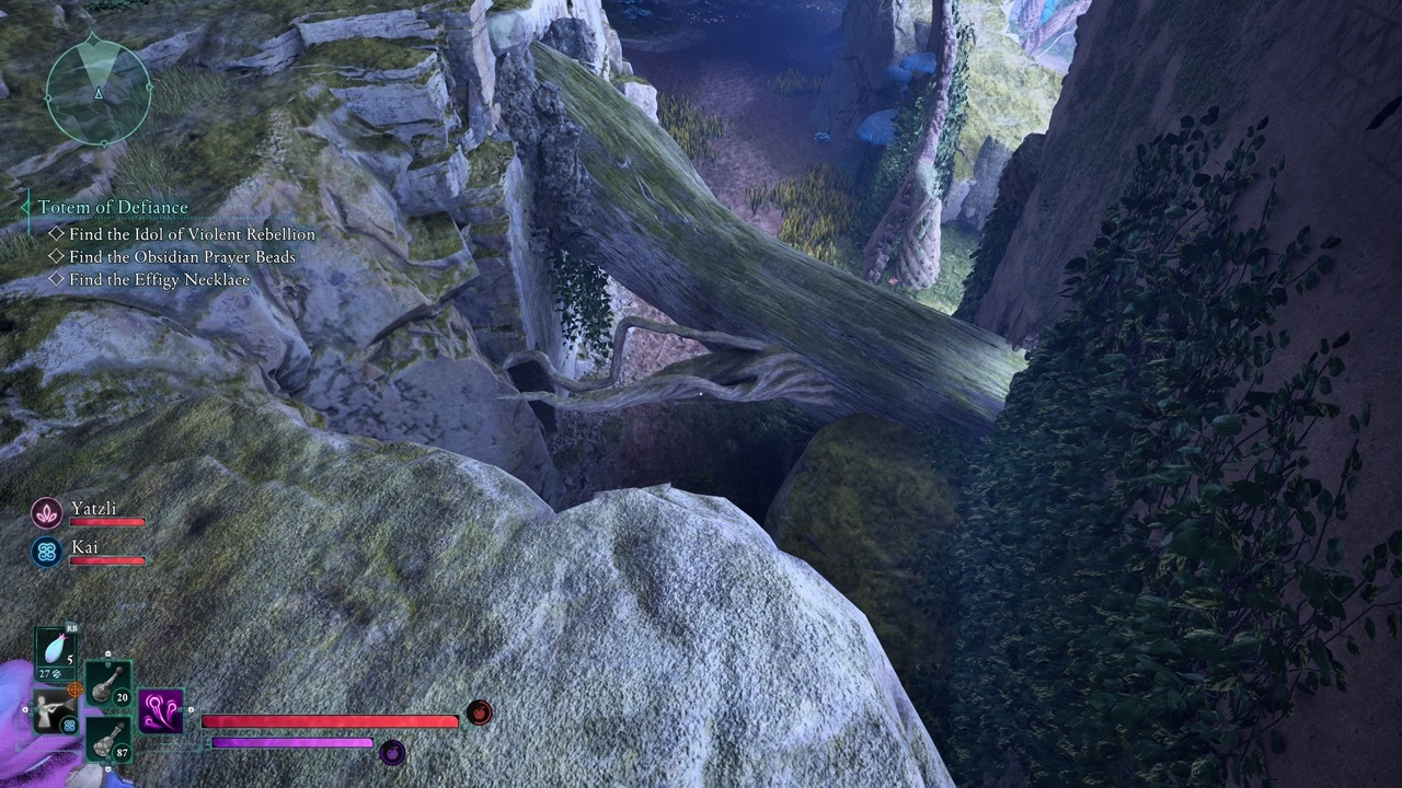 - В западной части арены найдите огромный упавший ствол дерева, который ведет к скалам.
