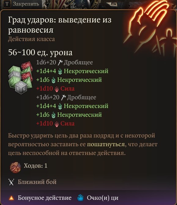 А учитывая, что бонусных действий можно сделать 4 штуки за ход при определенных манипуляциях, получается до 400 урона за ход одними только бонусными действиями, а ведь есть еще 2 атаки обычным действием, пусть и слабее.. Как там паладины поживают?
