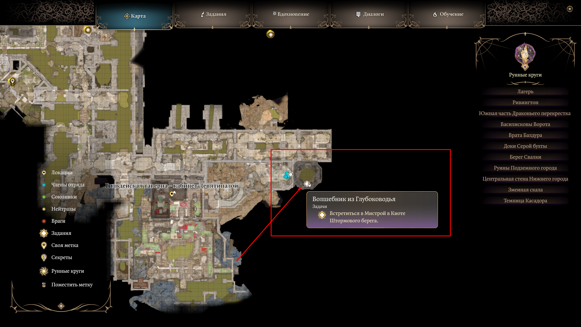 эта метка это просто выход из канализации в нижний город. тебе надо в храм в нижнем городе. просто переместись в портал самый первый нижнего города. там храм совсем близко