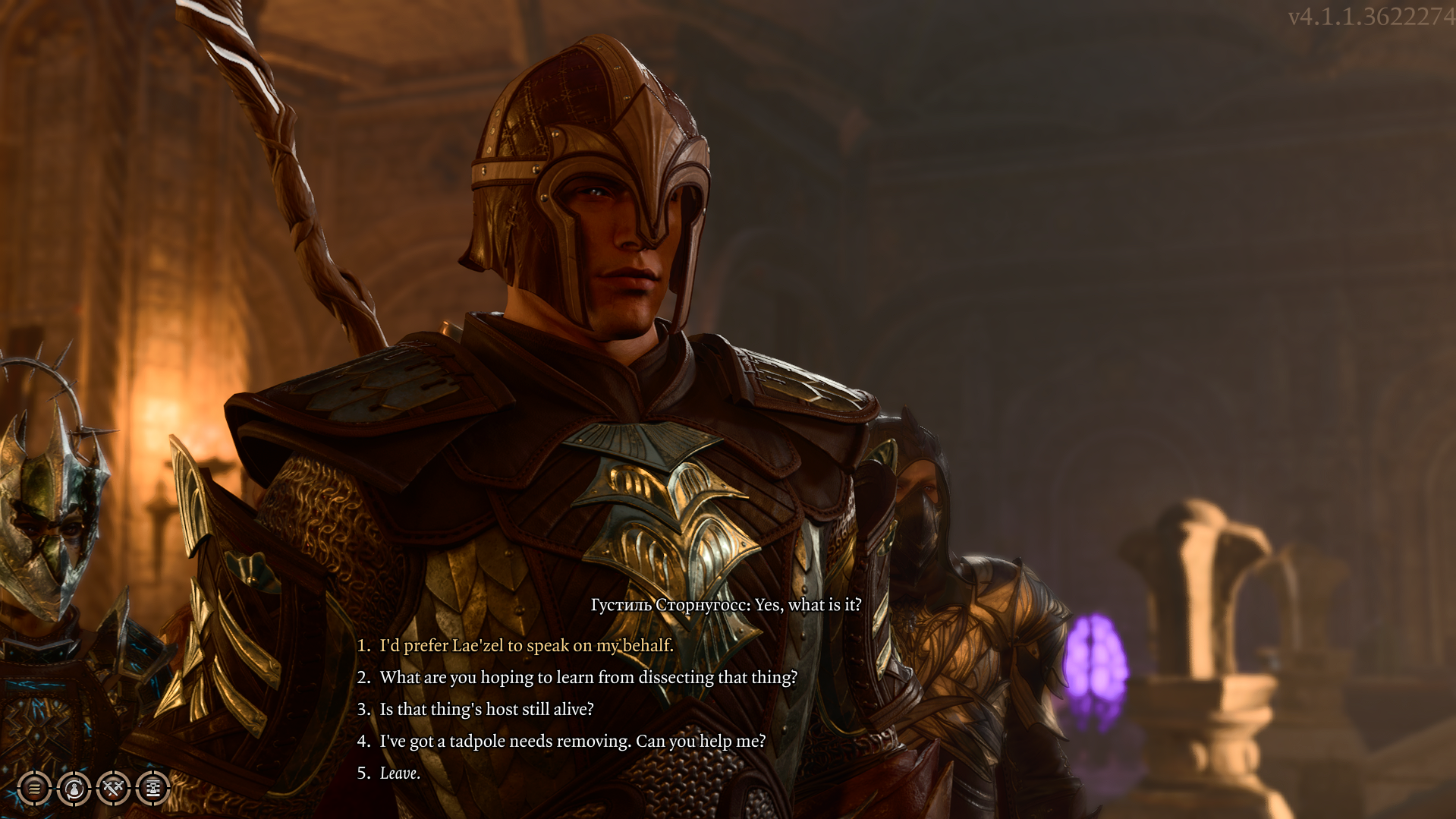 Да, тоже натыкалась на пару диалогов на английском, не критично. Думаю они со врменем поправят. Зато голоса озвучки просто бомба особенно Астарион )