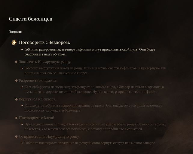 Убил всех гоблинов около Рощи друидов, после победы Зевлор просто стоит и переводит дух. Сделал долгий привал, два привала. Зевлор лишь стоит и не завершает задание. Версия игры: v4.1.1.3648072