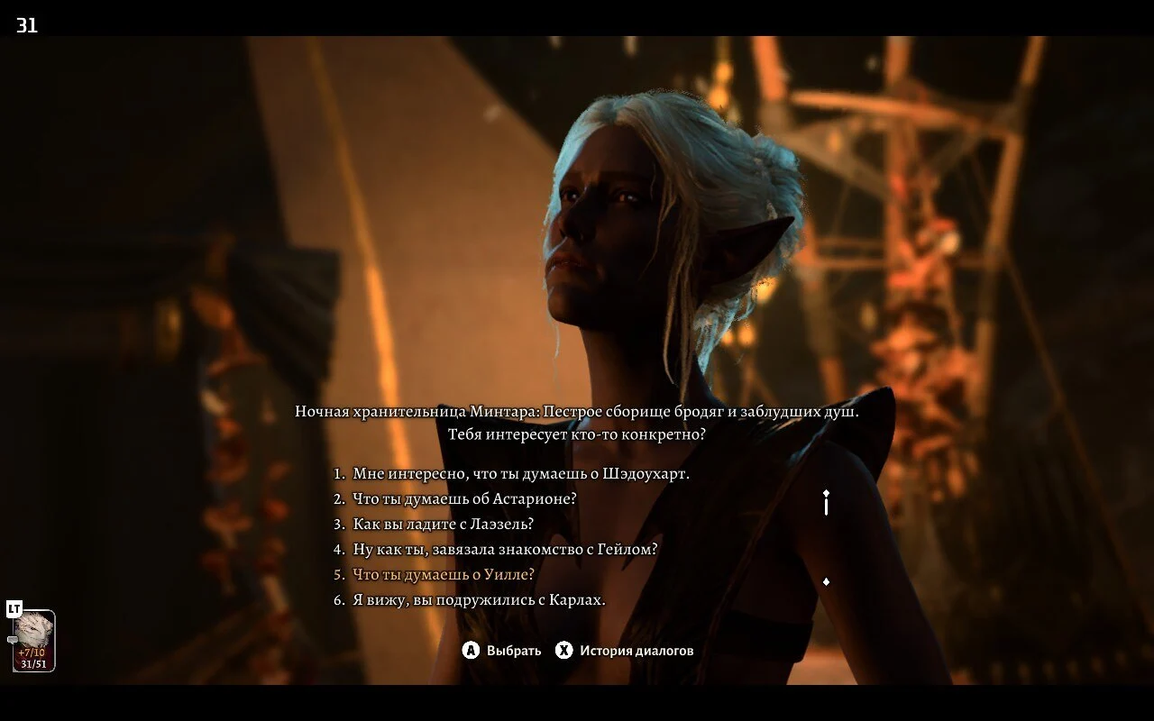 Один чел уже отписался, сказал что Минтару можно взять в компаньоны! Для это нужно поставить в пасивках не смертельный урон, чтобы в конце получила оглушение. Позже она появится в 2-ом акте, где её нужно будет спасти. Уилл и Карлах против не будут!
