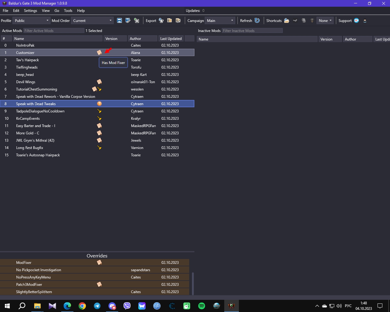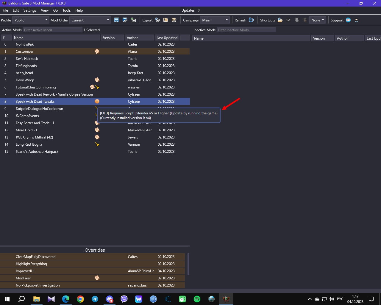 Собственно вопрос по модам: у меня всё с ними в порядке, или конкретно с этим, на скрине, проблема, а с другими, мне не нужно ждать обновления под текущий Хотфикс?