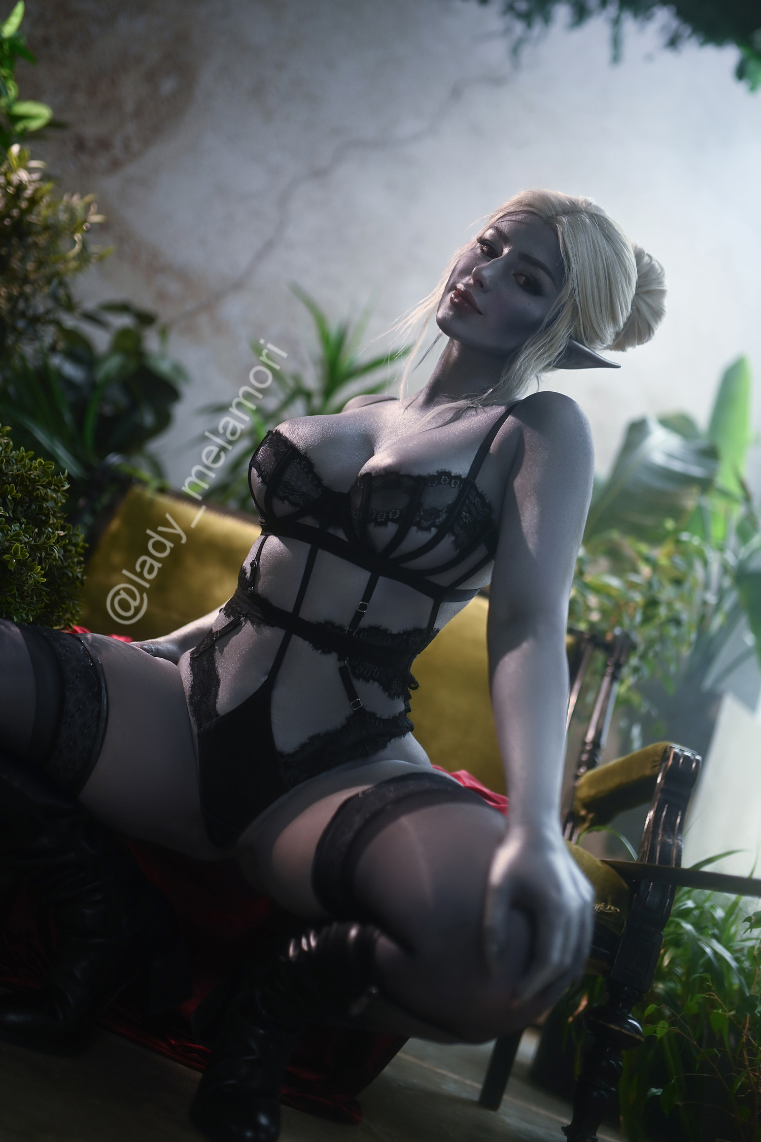 Фу... просто фу. Если на первых фото просто можно было считать, что это просто косплей на какую-то дроу, а не Минтару со смазливым лицом. То как только я увидела фото в нижнем белье. Мои глаза начали желать выбрать вилку.