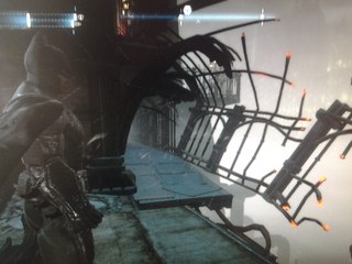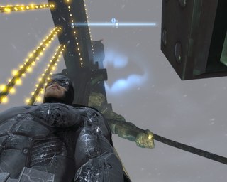 1) с помощью гаргульи слева на здании и усилителя крюка,а 2) там вроде нужно управляемым бэтарангом нажать на кнопку внутри контейнера ... Хотя могу и ошибаться .