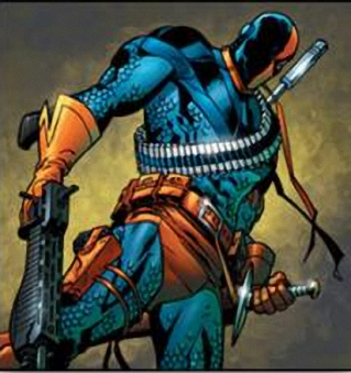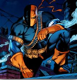 это Дефстроук,и он способен победить Бэтмана в схватке,как и половину Лиги справедливости