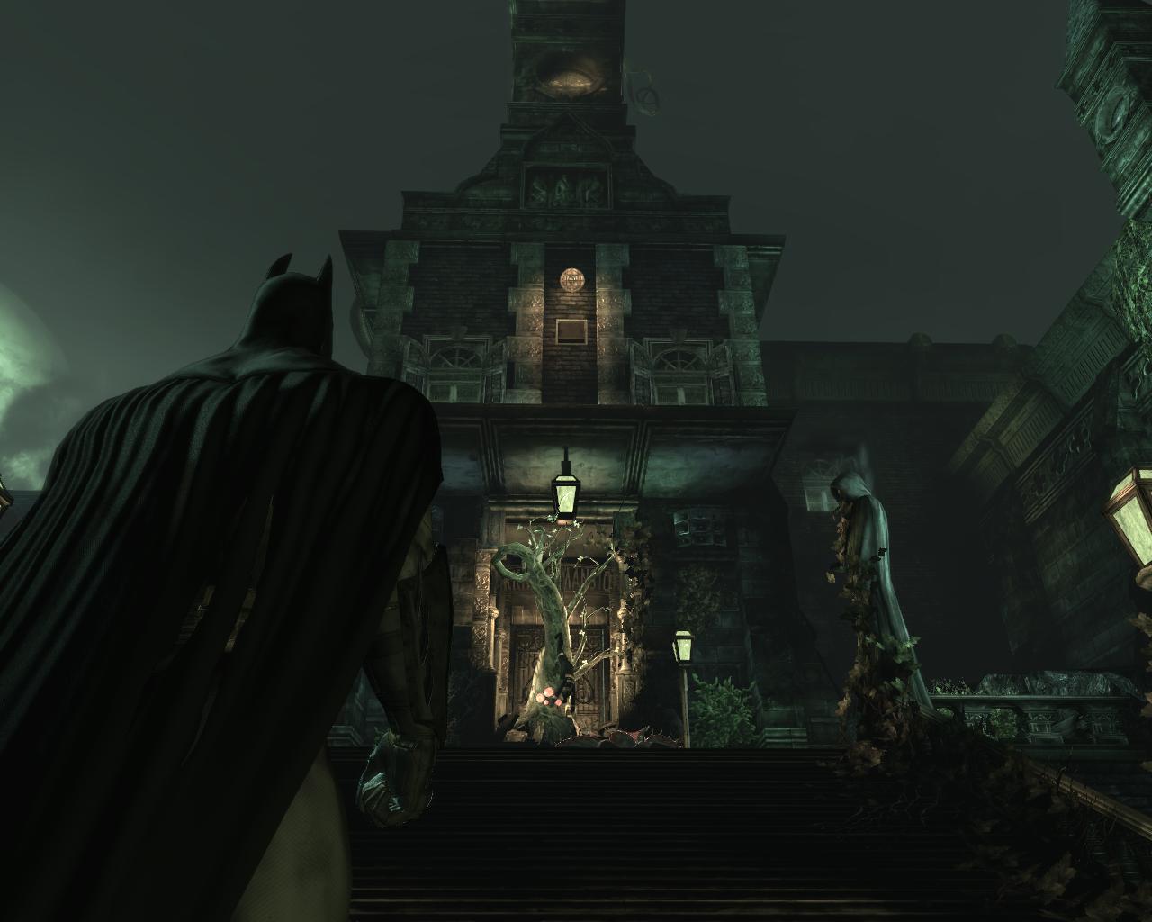 я вышел из особняка Аркхема (ето после встречи с плющем) ! и не могу зайти обратно! там дерево! а на верху там где вентиляцыя , она не подсвечиваеться! ВОТ: