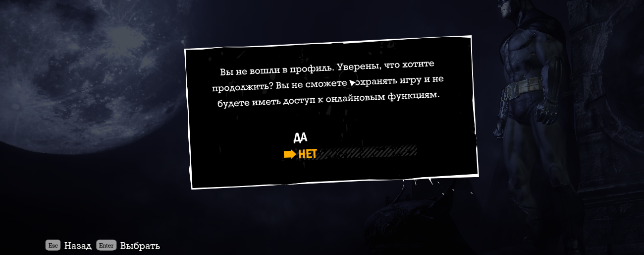 С серией Batman Arkham я решил познакомиться только сейчас (каюсь), скачал пиратку Arkham Asylum (каюсь), но вот в чем проблема без профиля в GFWL игра не хочет сохраняться, локальный профиль создать не получается (клавишу Home чуть не сломал), пробовал зарегистрироваться, все тщетно, помогите идиоту P.S: GOTY Edition от R.G. Mechanics