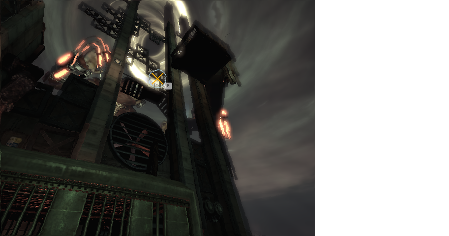 Здесь нужно зацепиться за платформу, такую же как та на которой стоишь. Она расположена чуть выше и правее чем жёлтый крест.