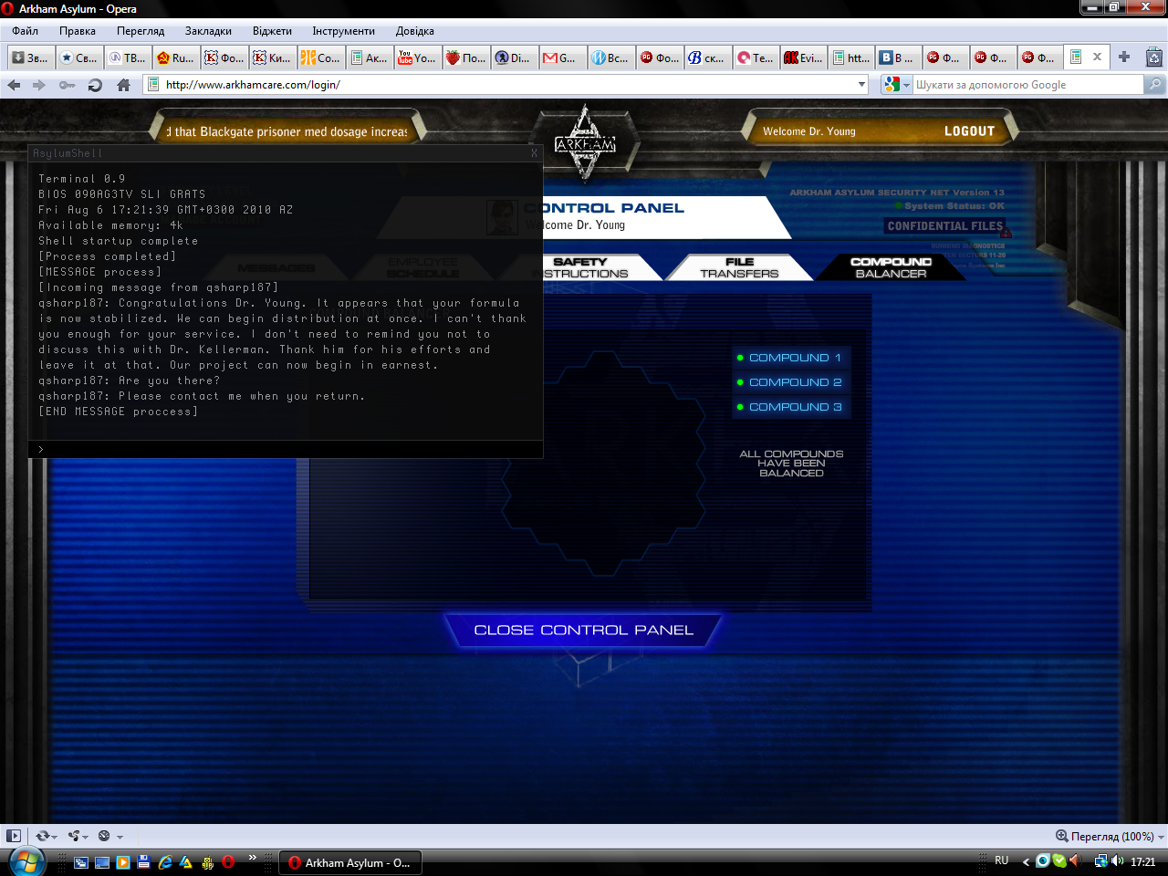 Игра Batman: Arkham Asylum имеет одну очень большую (на мой взгляд) пасхалку. Это сайт http://www.arkhamcare.com. Начну с самого начала.