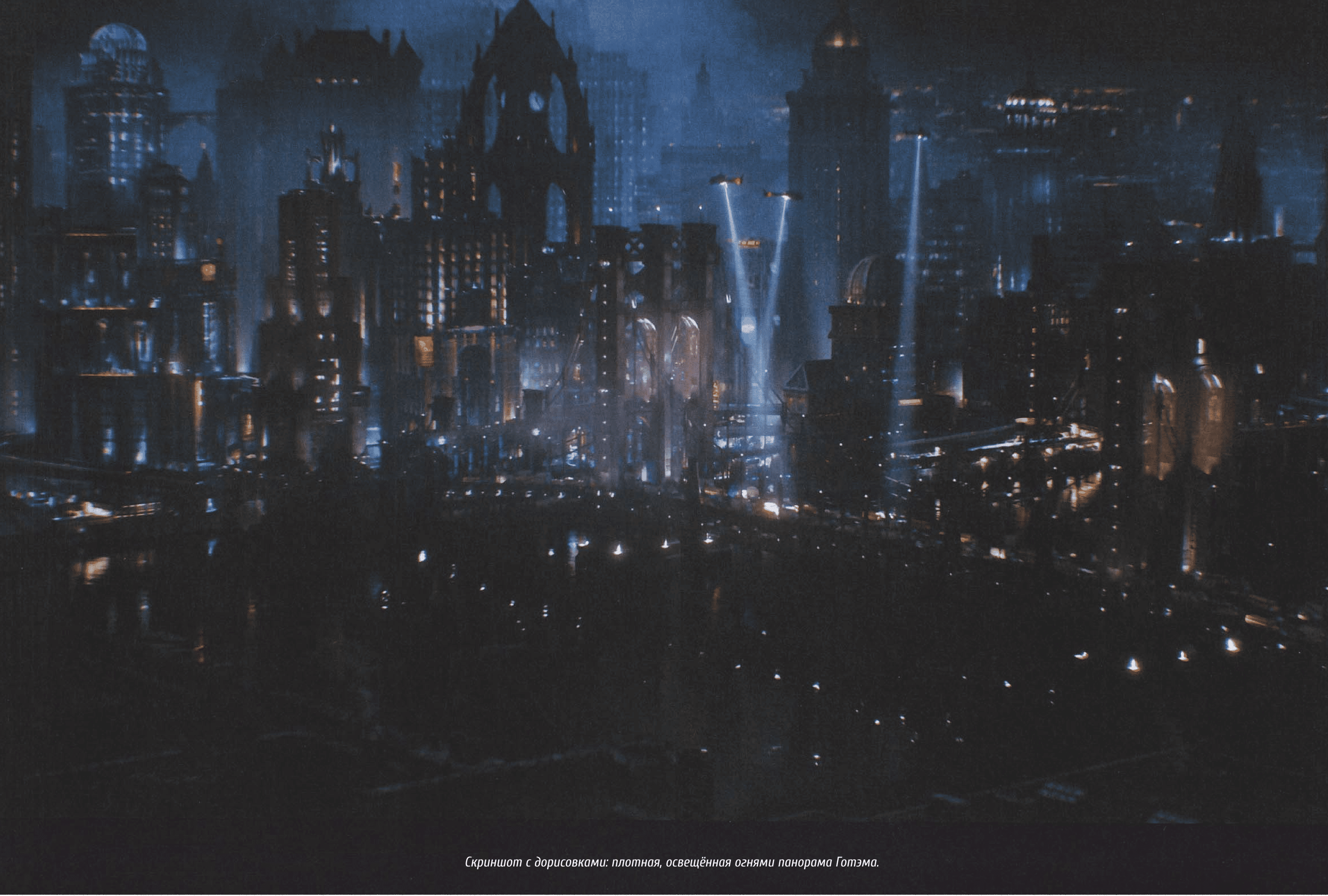 - Концепт-арты, эскизы, маркетинговые иллюстрации и внутриигровые рендеры, отражающие путь от первых набросков до финальных образов Бэтмена, его союзников и злодеев.