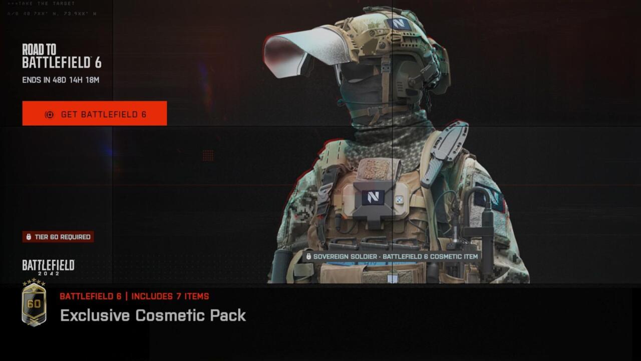 Все эксклюзивные предметы можно заработать, играя в Battlefield 2042 в период до 7 октября. В рамках неожиданного обновления в игре появилась новая вкладка «Бесплатный пропуск». Этот боевой пропуск содержит более 60 наград, из которых два десятка предназначены специально для Battlefield 6.