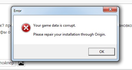 ребят, установил начал запускать и вылазеет окно: "your games data is corrupt. please repair your installation through Origin." помогите пожалуйста