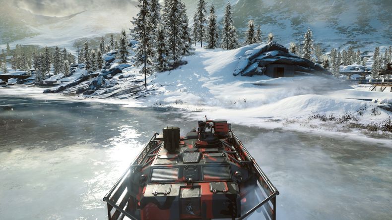 Действие же самих карт переносится в заснеженную Россию. Пытаться объяснить это сюжетно все равно бесполезно, поэтому… просто Россия и ее секретные разработки. Первая карта называется «Карельские гиганты» и справедливо считается самой красивой в дополнении. Здесь нас ждут атмосферные зеленые холмы, небольшой военный городок, заброшенная шахта и подземный бункер, потолок над которым можно благополучно проломить. Из-за обилия растительности технике здесь приходится несладко, а ключевой целью обычно является занятие стратегических высот.