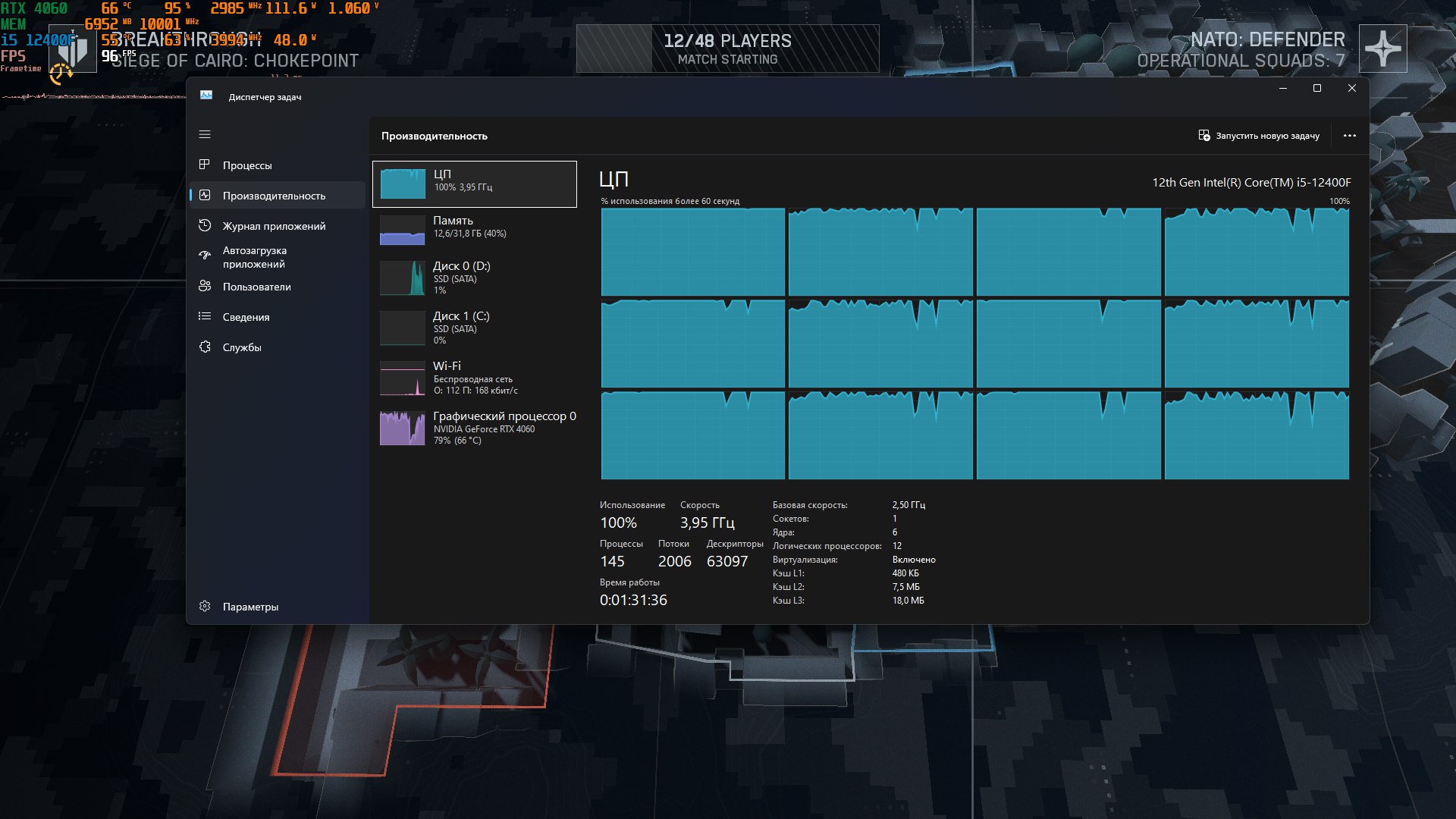 100% загрузка ЦП в диспетчере задач при игре?