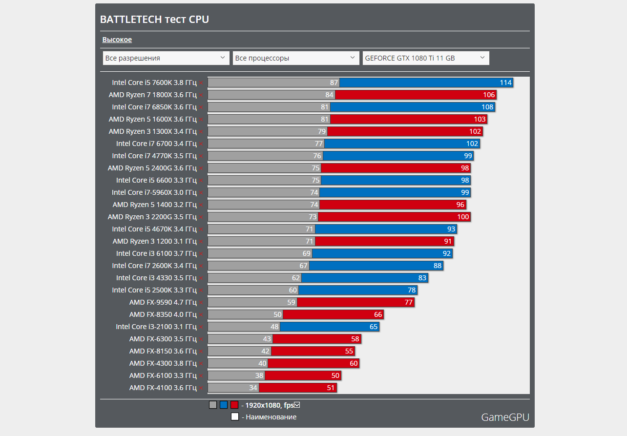 При использовании видеокарт AMD приемлемый показатель не ниже 25 кадров показали процессоры FX-4300 или Core i 3 2100, а средний показатель FPS в 60 кадров смогут обеспечить решения уровня FX-8350 или Core i 5 2500.